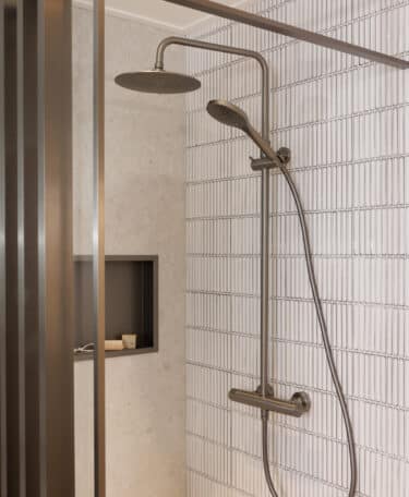 De Badkamer Greige biedt een tijdloze uitstraling met een elegante mix van neutrale tinten en moderne elementen. Deze badkamer is speciaal ontworpen voor liefhebbers van ingetogen luxe en gebruiksgemak.